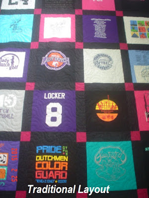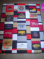 Would you like to have a t-shirt quilt made? I can do that for you! Just provide me with the shirts, and I can do the rest. You can pick the layout, size & colors, and usually in a few weeks, I can have the completed quilt ready to go. These are very popular for Christmas or graduation gifts.