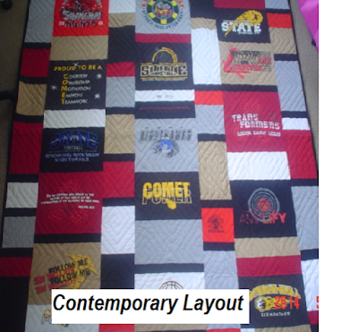 Contemporary Layout: Shirts are cut to varying sizes, with random coordinating blocks between shirts.